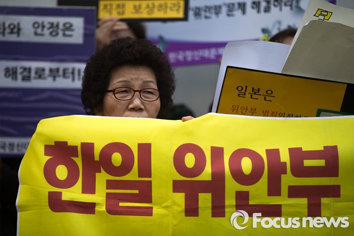 (서울=포커스뉴스) 16일 오후 서울 종로구 옛 일본 대사관 앞에서 '일본군 위안부 문제해결을 위한 1222차 정기 수요집회'가 열리고 있다.
