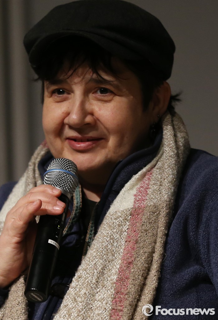 (서울=포커스뉴스) 16일 오후 서울 종로구 미마지아트센터 눈빛극장에서 열린 연극 '두 코리아의 통일' 프레스콜에 참석한 까띠 라뺑 연출이 인사말을 하고 있다.