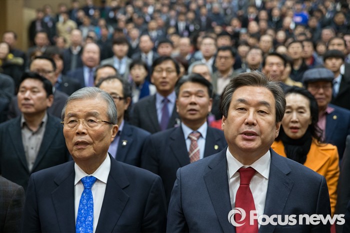 | △ 애국가 부르는 김무성과 김종인 |