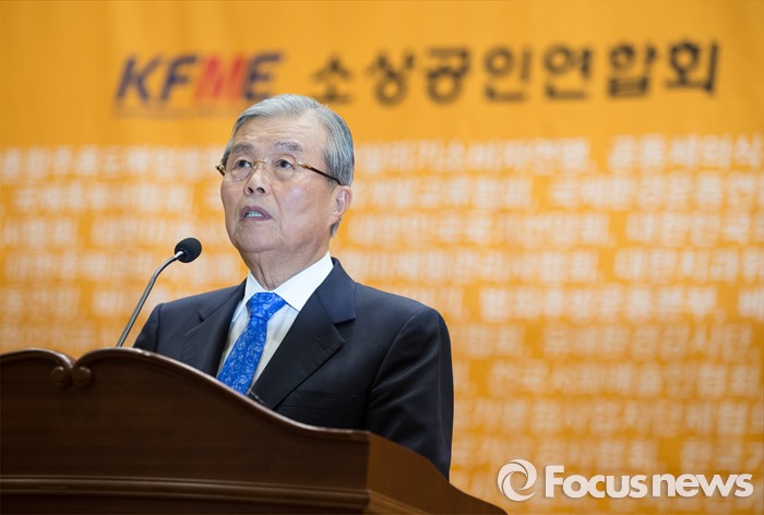 (서울=포커스뉴스) 김종인 더불어민주당 대표가 16일 오후 서울 여의도 국회 의원회관에서 열린 '자영업자 정책연대 및 생존권 사수 출정식'에 참석해 인사말을 하고 있다.