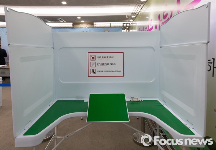 (서울=포커스뉴스) 16일 오후 서울 영등포구 이룸센터에서 열린 '20대 총선 거동불편유권자 대상 사전투표 모의 체험행사'에서 넓어진 기표소가 소개되고 있다.