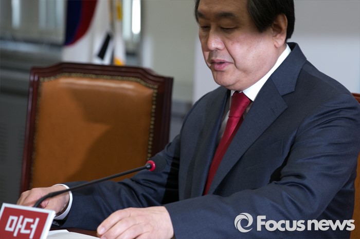 (서울=포커스뉴스) 김무성 새누리당 대표가 16일 오후 서울 여의도 국회에서 긴급 기자회견을 하기 위해 자리에 앉고 있다. 김 대표는 이 자리에서 "오전에 열린 최고위원회의에서 단수 추천지역 7곳과 우선 추천지역 1곳을 공천관리위원회에 보류 요청했다"고 밝혔다.