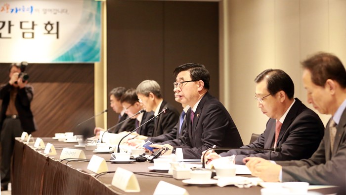(서울=포커스뉴스) 이기권 고용노동부 장관이 16일 오전 서울 더플라자호텔(4층오키드홀)에서 현대차・기아차・한국GM등 자동차 업종 14개 기업 CEO들과 간담회를 갖고 있다. <사진제공=고용노동부>