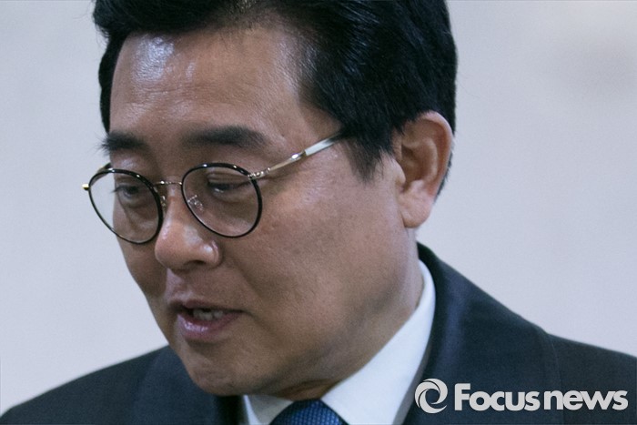 (서울=포커스뉴스) 공천 배제(컷오프)된 전병헌 더불어민주당 의원이 17일 오전 서울 여의도 국회 정론관에서 지역구 당원들의 기자회견 예약을 도와준 뒤 본청을 나서고 있다.