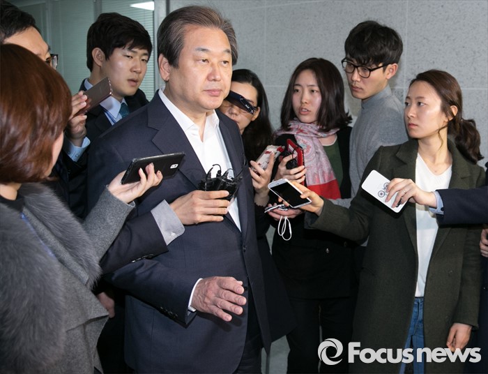 (서울=포커스뉴스) 김무성 새누리당 대표가 17일 오전 서울 여의도 국회 의원회관 의원실로 출근하며 취재진 질문에 답하고 있다.
