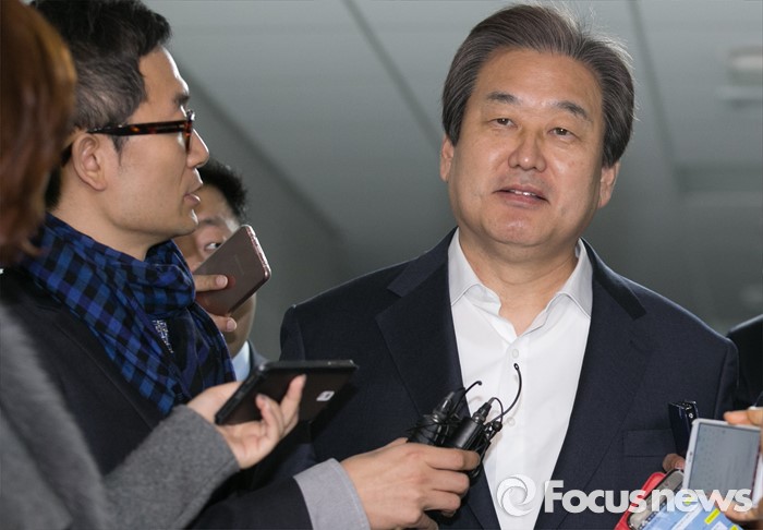 (서울=포커스뉴스) 김무성 새누리당 대표가 17일 오전 서울 여의도 국회 의원회관 의원실로 출근하며 취재진 질문에 답하고 있다.