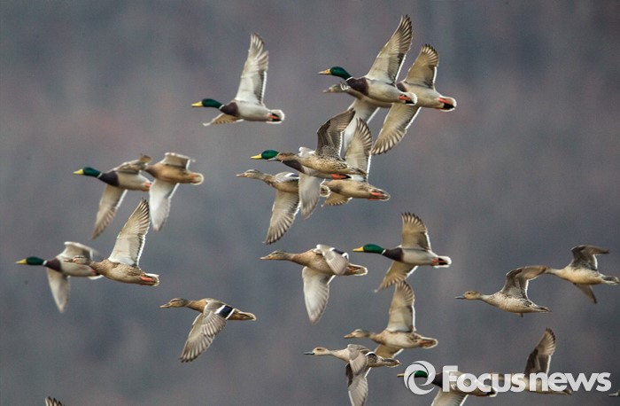 (철원=포커스뉴스) 철원평야에서 월동한 청둥오리들이 15일 오후 한탄강을 따라 북상하고 있다.