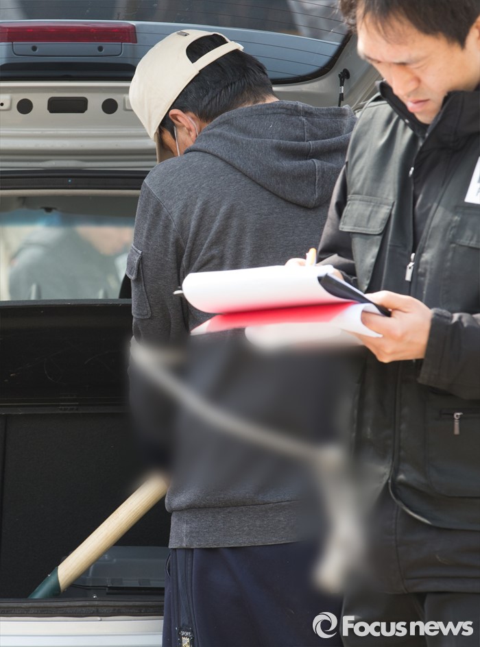 (시흥=포커스뉴스) 시각장애인 아버지를 살해 후 암매장한 아들 이모(37)씨가 17일 오전 경기도 시흥시 자택에서 현장검증을 하고 있다.