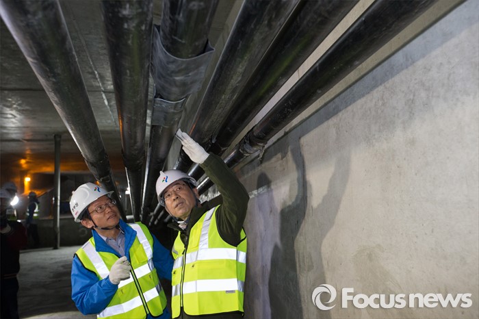 (서울=포커스뉴스) 박원순 서울시장이 17일 오전 통행재개를 앞둔 서울 내부순환로를 점검하기 위해 정릉천고가 교량 상부구조물 내부에서 시설관리공단 관계자와 함께 일부 교체를 마친을 텐던 및 부품을 살펴보고 있다.