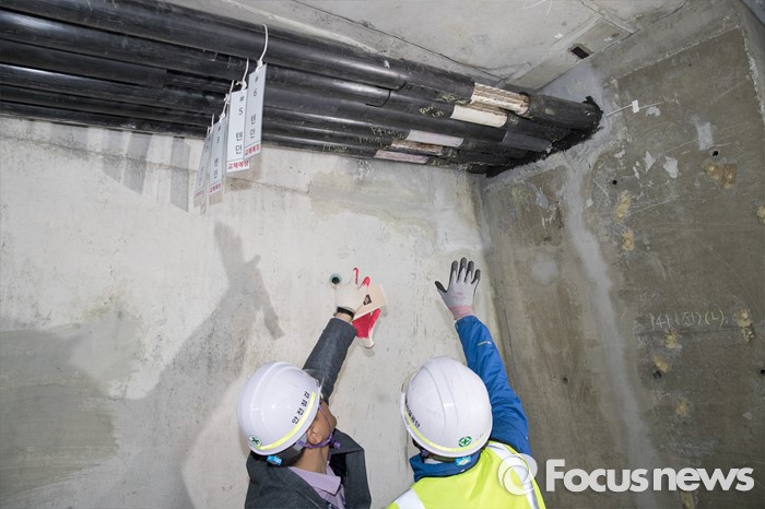 (서울=포커스뉴스) 상부를 지지하던 일부 텐던(대형케이블)이 손상된 것을 발견해 지난달 22일부터 차량 통행이 전면 중단됐던 서울 내부순환로 정릉천고가가 오는 19일부터 통행이 재개된다. 사진은 17일 손상된 일부 텐던을 교체한 모습.