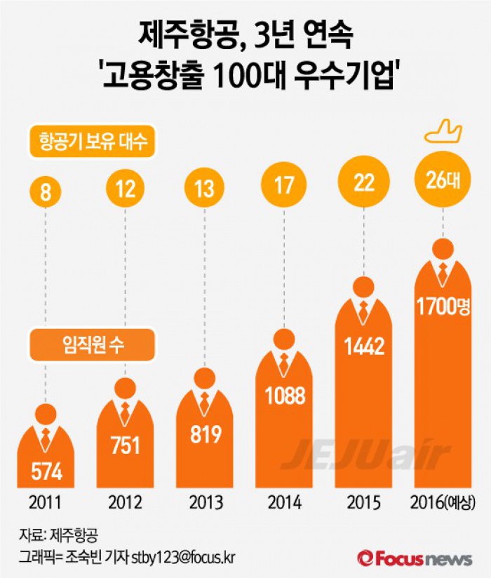 | △ [그래픽] 제주항공, 3년 연속 '고용창출 100대 우수기업' |