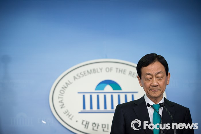 (서울=포커스뉴스) 공천에서 배제 된 새누리당 3선 중진 진영 의원이 17일 오후 서울 여의도 국회 정론관에서 탈당을 공식 선언하고 있다.
