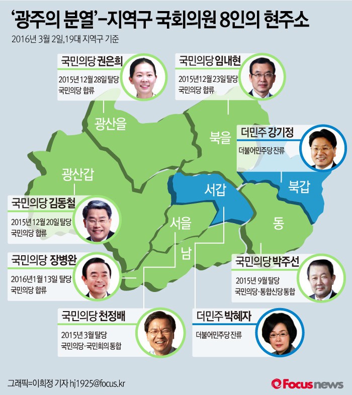 | △ [그래픽] ‘광주의 분열’-지역구 국회의원 8인의 현주소 |