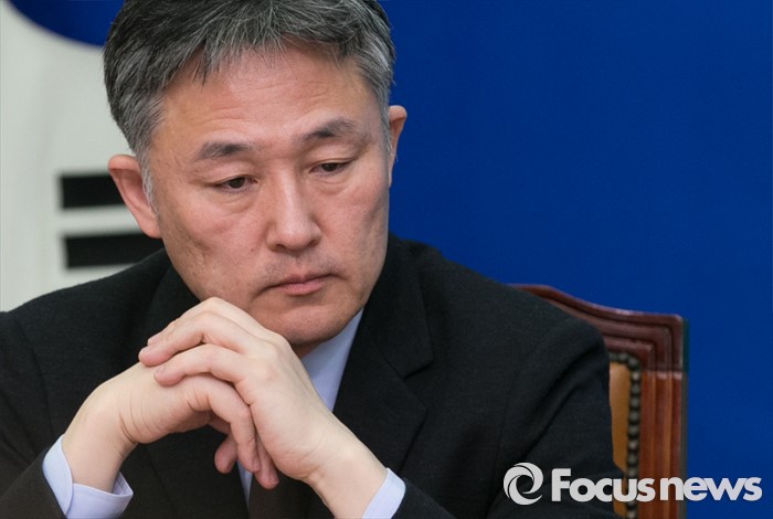 (서울=포커스뉴스) 표창원 더불어민주당 비대위원이 18일 오전 서울 여의도 국회에서 열린 비대위-선대위 연석회의에 참석해 생각에 잠겨 있다.