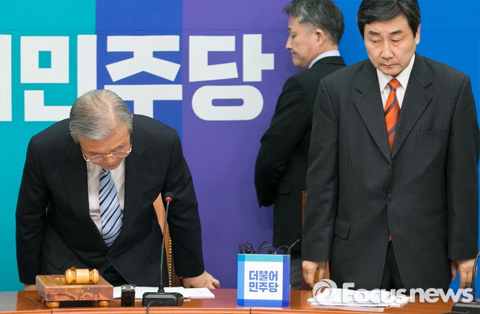 (서울=포커스뉴스) 김종인(왼쪽부터) 더불어민주당 비대위 대표, 표창원 비대위원, 이종걸 원내대표가 18일 오전 서울 여의도 국회에서 열린 비대위-선대위 연석회의에 참석하고 있다.