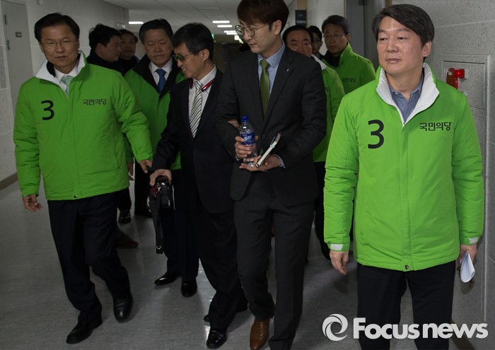 (서울=포커스뉴스) 안철수, 천정배 국민의당 상임 공동대표가 18일 오전 서울 여의도 국회의원회관에서 열린 최고위원회의에 참석하고 있다.