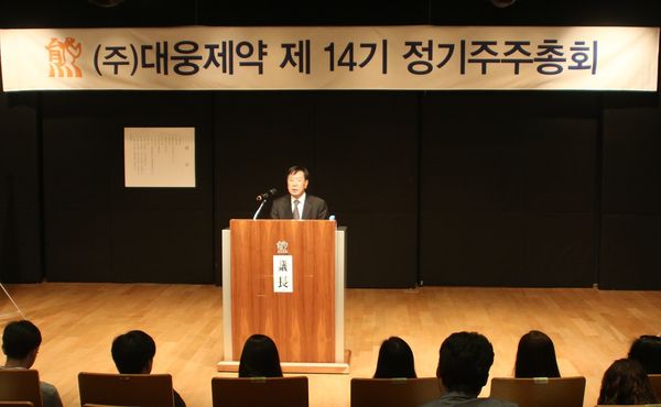 이종욱 대웅제약 부회장은 18일 열린 제14기 주주총회 인사말에서 “지난 해 제약업계는 안팎으로 어려운 경영환경이었지만 대웅제약 임직원 모두의 ‘도전과 혁신’, ‘소통과 몰입’을 바탕으로 지속 가능한 성장을 할 수 있었다”고 말했다.