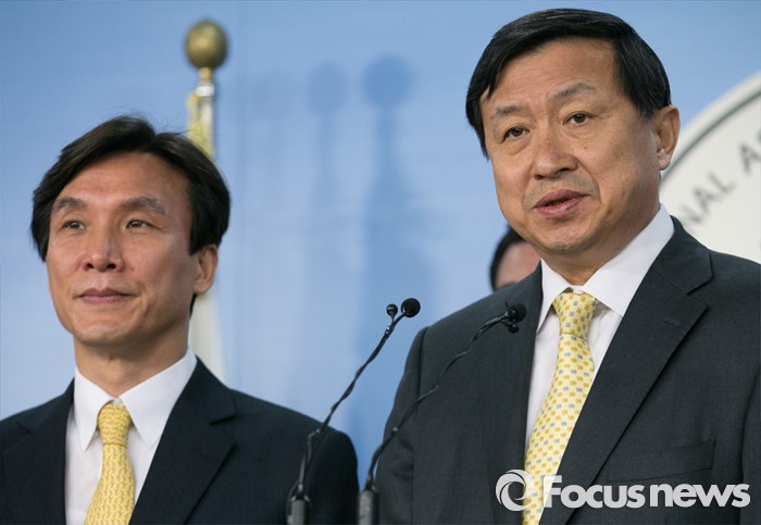 (서울=포커스뉴스) 더불어민주당을 탈당한 신기남 의원이 18일 오전 서울 여의도 국회 정론관에서 원외 정당인 민주당 입당 기자회견을 하