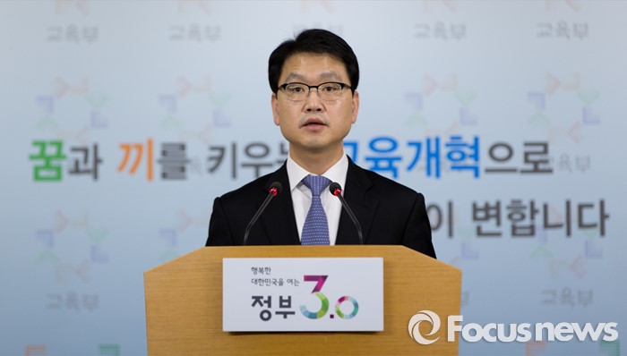 (서울=포커스뉴스) 18일 오전 서울 종로구 정부서울청사 브리핑룸에서 이승복 교육부 대변인이 일본 고등학교 사회 교과서 검정결과에 대한 규탄 성명을 발표하고 있다.