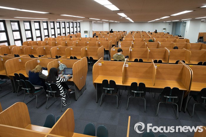 (서울=포커스뉴스) 새학기를 맞은 18일 오전 서울 소재의 한 대학교 도서관에서 대학생들이 공부를 하고 있다.