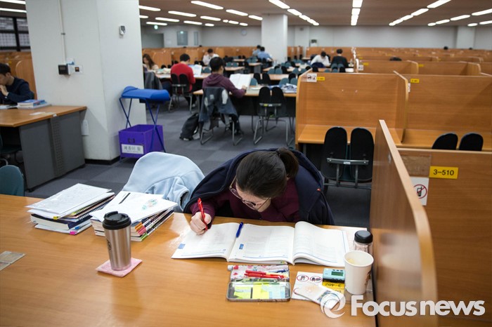 (서울=포커스뉴스) 새학기를 맞은 18일 오전 서울 소재의 한 대학교 도서관에서 대학생들이 공부를 하고 있다.