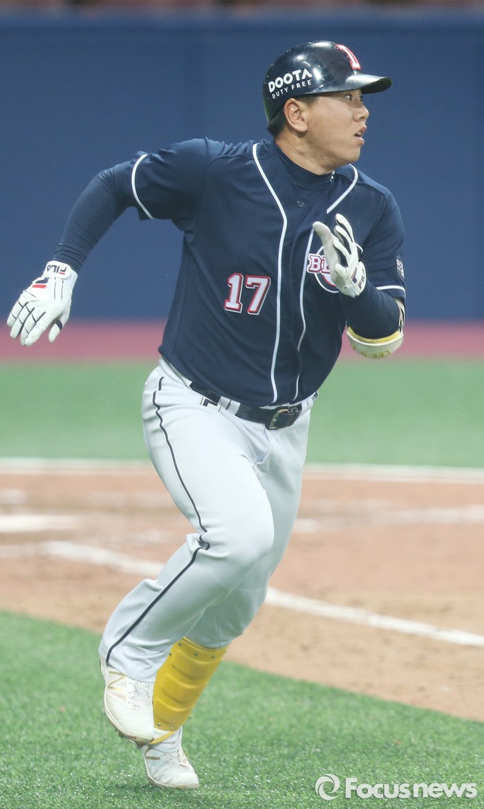 (서울=포커스뉴스) 18일 서울 고척스카이돔에서 열린 2016 프로야구 시범경기 두산-넥센 경기 8회초 두산 이우성이 좌익수를 넘기는 2루타를 날리고 뛰어 나가고 있다.