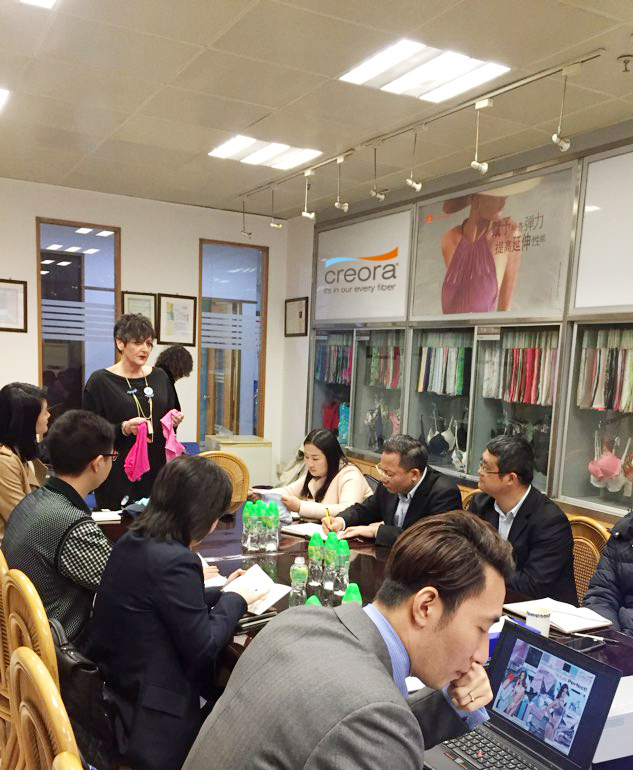 또한 제품의 기능적 차별성을 넘어 소비자의 감성까지 만족시키겠다는 브랜드 의지를 담아 무한한 가능성을 지닌 '물'이라는 모티브를 활용해 'Stretching Beyond(스트레칭 비욘드)' 콘셉트를 담았다.효성이 고객사에 스판덱스 '크레오라'를 알리기 위해 '크레오라 워크숍'을 진행하고 있다.<사진제공=효성>