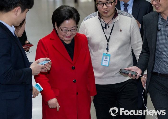 (서울=포커스뉴스) 김을동 새누리당 최고위원이 18일 오후 서울 여의도 국회 대표최고위원실에서 열린 최고위원회의에 참석하고 있다.