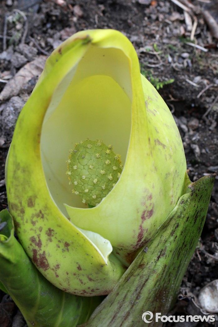 (하남=포커스뉴스) 봄 기운이 완연한 19일 오전 경기도 하남시 검단산자락에 노란앉은부채가 살포시 자태를 드러내고 있다.<사진제공=이준택교수>