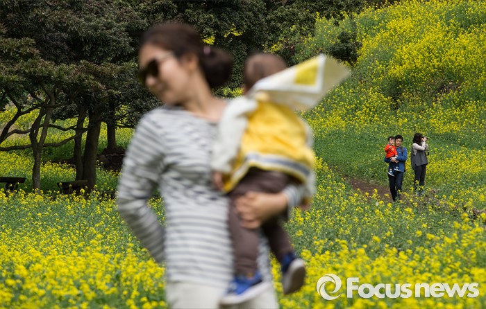(제주=포커스뉴스)19일 오전 제주 서귀포 중문관광단지 일원에서 제18회 서귀포 유채꽃 국제걷기대회가 열리고 있다. 참가자들이 엉덩물계곡 만개한 유채꼿 길을 걷고 있다.