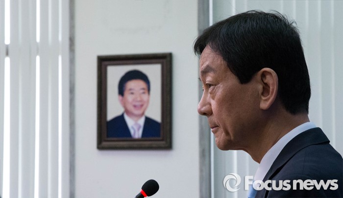 (서울=포커스뉴스) 새누리당에서 공천 배제된 뒤 탈당한 진영 의원이 20일 오전 서울 여의도 국회에서 더불어민주당 공식 입당을 알리는 기자회견을 하고 있다.