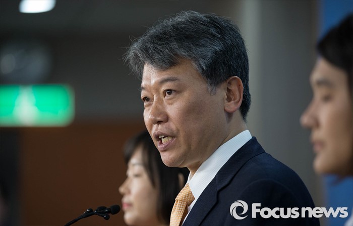 (서울=포커스뉴스) 김선동 전 통합진보당 의원이 20일 오후 서울 여의도 국회에서 기자회견을 열고 민주연합당 입당을 발표하고 있다.