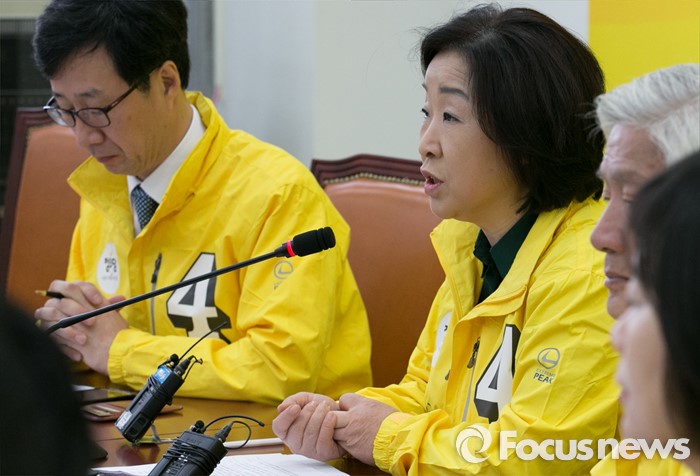 (서울=포커스뉴스) 심상정(왼쪽 두번째) 정의당 상임선대위원장이 21일 오전 서울 여의도 국회에서 열린 중앙선대위 1차 회의에 참석해 모두발언을 하고 있다.