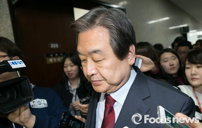 (서울=포커스뉴스) 김무성 새누리당 대표가 21일 오전 서울 여의도 국회에서 열린 최고위원회를 마친 뒤, 기자들의 질문을 들으며 밖으로 나가고 있다.