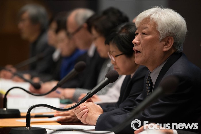(서울=포커스뉴스) 21일 오전 서울 종로구 프레스센터에서 열린 제1차 '한반도 평화 회의'에 참석한 김영주 한국기독교교회협의회 총무가 인사말을 하고 있다.