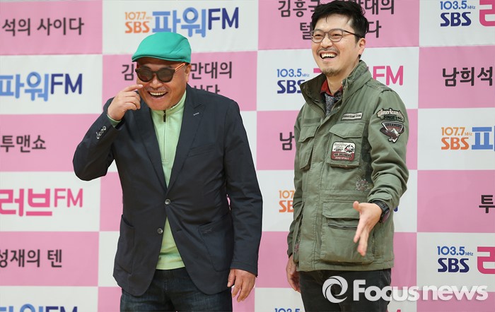 (서울-포커스뉴스) 21일 오후 서울 SBS 목동사옥에서 열린 SBS 라디오 봄 개편 기자간담회에 참석한 가수 김흥국(왼쪽)과 영화감독 봉만대가 포토타임을 갖고 있다.