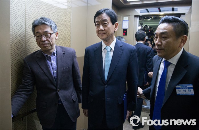(서울=포커스뉴스) 새누리당을 탈당한 후 더불어민주당에 합류한 진영 의원이 21일 오후 서울 여의도 국회 의원회관 중앙위원회 회의에 참석했다가 회의가 8시로 연기 된 사실을 알고 되돌아 가고 있다.
