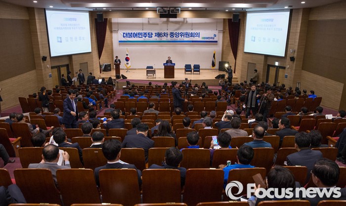 (서울=포커스뉴스) 비례대표 선정을놓고 김종인 비대위 대표가 당무를 거부하는 등 더불어민주당의 내홍이 계속되고 있는 가운데 22일 오전 서울 여의도 국회 의원회관에서 진행 중인 중앙위원회의에서 비례대표국회의원 후보자들이 정견발표를 하고 있다.