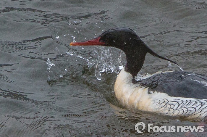 (가평=포커스뉴스) UN이 정한 세계 물의 날인 22일 오전 세계적인 희귀조 호사비오리(천연기념물 448호)가 북상에 앞서 경기도 가평군 북한강에서 먹이 사냥을 하고 있다. 전세계에 1000여마리 미만이 생존해 있는 물새 호사비오리는 1급수에서만 서식하기 때문에 개체수가 줄고 있다. UN은 인구와 경제활동의 증가로 수질오염이 악화되고, 물부족 현상이 늘어나자 인류에 경각심을 올리기 위해 세계 물의 날을 3월 22일로 지정했다.