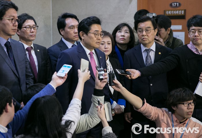 | △ 취재진 질문 답하는 전병헌 |