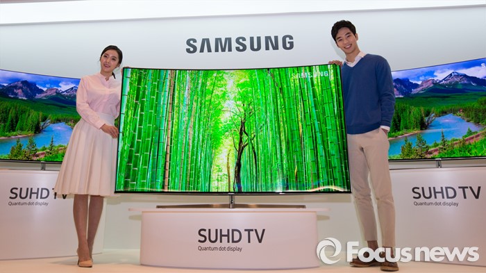 (서울=포커스뉴스) 22일 오전 서울 강남구 삼성전자 서초사옥에서 모델들이 '퀀텀닷 디스플레이 SUHD TV' 제품을 선보이고 있다.