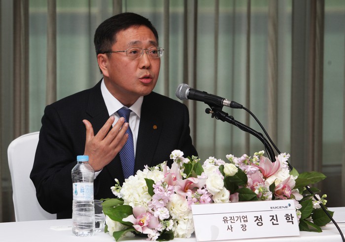 정진학 유진기업 사장은 22일 서울 여의도 콘래드호텔에서 열린 기자간담회에서 "현재 약 10%인 동양 보유 지분을 25%까지 늘릴 것"이라며 "그 정도 지분은 가져야 안정적인 경영권을 확보할 수 있다"고 말했다.