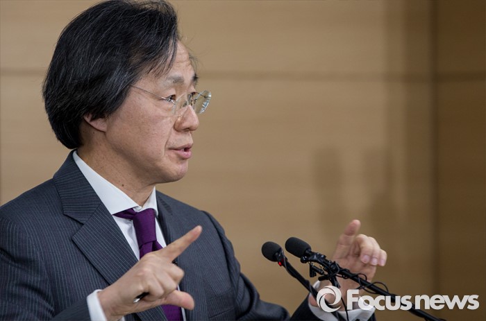(서울=포커스뉴스) 22일 오전 서울 종로구 정부서울청사에서 열린 '지카바이러스 감염증 해외 유입사례 발생' 관련 브리핑에 참석한 정기석 질병관리본부장이 바이러스의 감염 경로 및 관련대책에 대해 발표하고 있다.