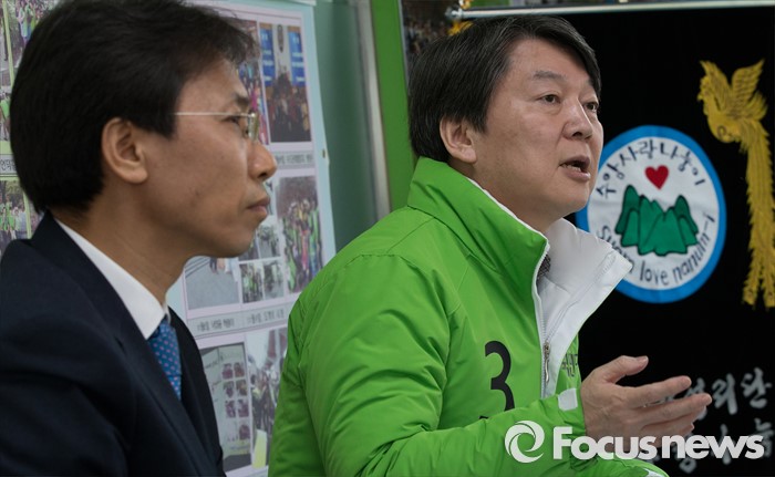 (서울=포커스뉴스) 안철수 국민의당 상임공동대표(오른쪽)가 22일 오후 서울 노원구 상계동 김광수 서울시의원 사무실에서 지역상공인들과 대화의 시간을 갖고 있다.