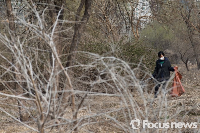 (서울=포커스뉴스) 22일 오후 서울 영등포구 밤섬에서 한 자원봉사자가봄맞이 정화작업을 하고 있다.