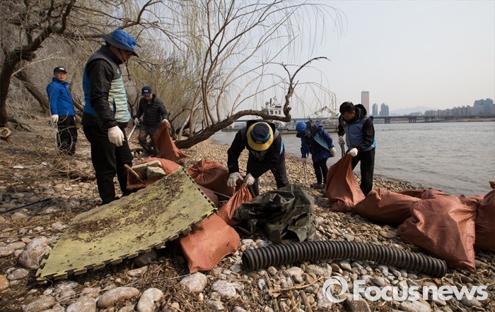 (서울=포커스뉴스) 22일 오후 서울 영등포구 밤섬에서 한강사업본부 관계자들과 자원봉사자들이 조류 산란기 전 정화작업을 하고 있다.