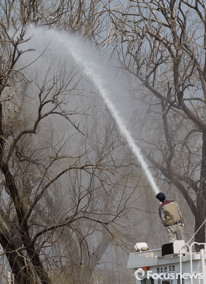 (서울=포커스뉴스) 22일 오후 서울 영등포구 밤섬에서 한강사업본부 관계자들이 조류 산란기 전 버드나무에 쌓인 민물가마우지의 배설물 등을 청소하고 있다.