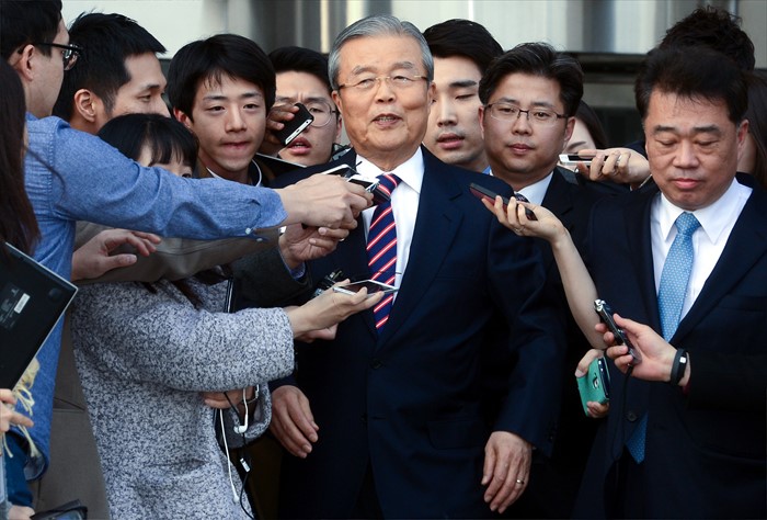 | △ 취재진 질문 받으며 나서는 김종인 |