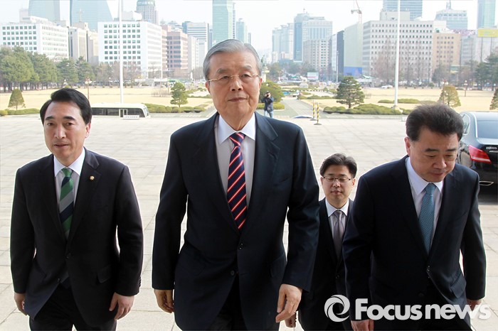 (서울=포커스뉴스) 20대 총선 비례대표 후보자 순번 등 논란으로 당무를 거부했던 김종인(가운데) 더불어민주당 비대위 대표가 22일 오후 서울 여의도 국회에서 비공개 회의 참석을 위해 이동하고 있다.