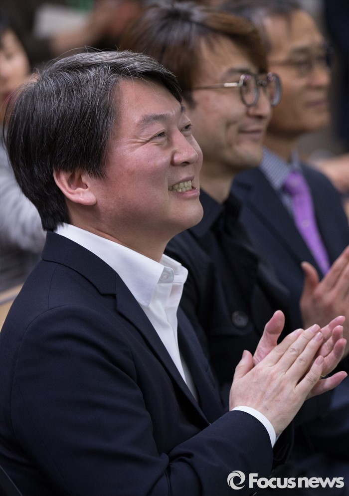 (서울=포커스뉴스) 22일 오후 서울 마포구 국민의당 당사에서 안철수 국민의당 상임공동대표가 PI 론칭 행사에서 디자이너의 발표가 끝나고 박수를 치고 있다.